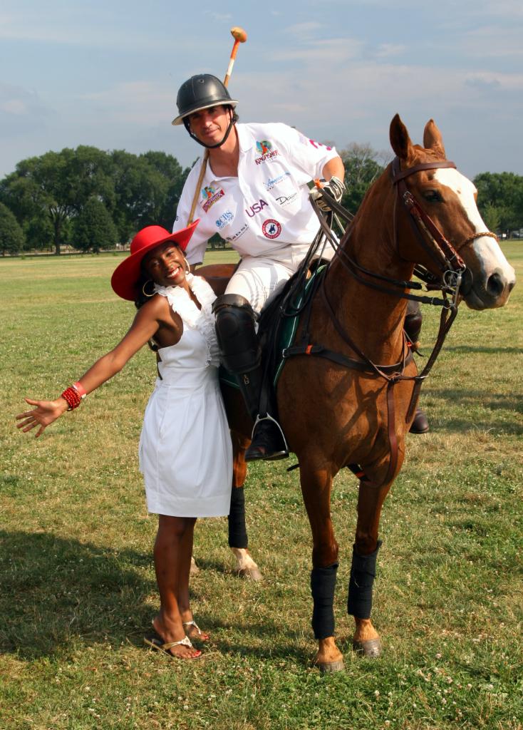 Tareq & Michaele Salahi rebounded from a controversial year with a polo party and a positive attitude. The sun was shining (it was a scorcher of a day actually) but the wine was flowing, the ponies were galavanting, and the polo match was in full force. This years event was held in West Potomac Park, and featured food from vendors including Tandoori Nights, Kellari, and Popeyes Louisiana Kitchen. There was a silent auction offering dozens of signed photographs, sports jerseys, and musical instruments from entertainers and musicians. I had my eye on the pink signed Taylor Swift guitar. Markette was eyeballing the Jimmy Buffet one. There was a a guitar listed as being autographed by Paul McCartney that had a minimum bid of $1,050. I don’t think there were too many bids on many of the items though.