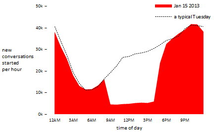 When the photos were restored at 4 p.m., 2,200 people were in the middle of conversations that had started “blind.” But with the photos back up, conversations melted away disproving the possibility that looks may not be important to those users.