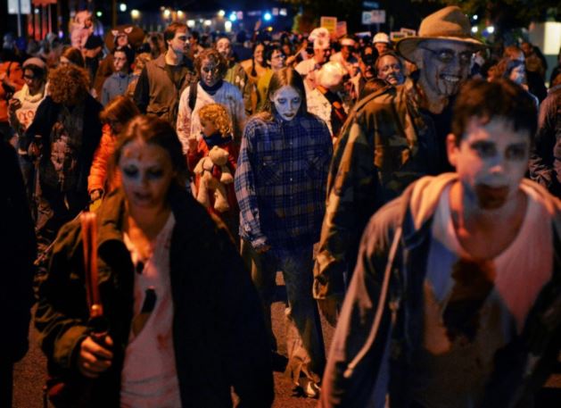 Zombies will march from Denizens Brewing to the AFI Silver Theatre at 9 p.m. Saturday night for a screening The Living Dead at Manchester Morgue. Bill O’Leary/Washington Post)